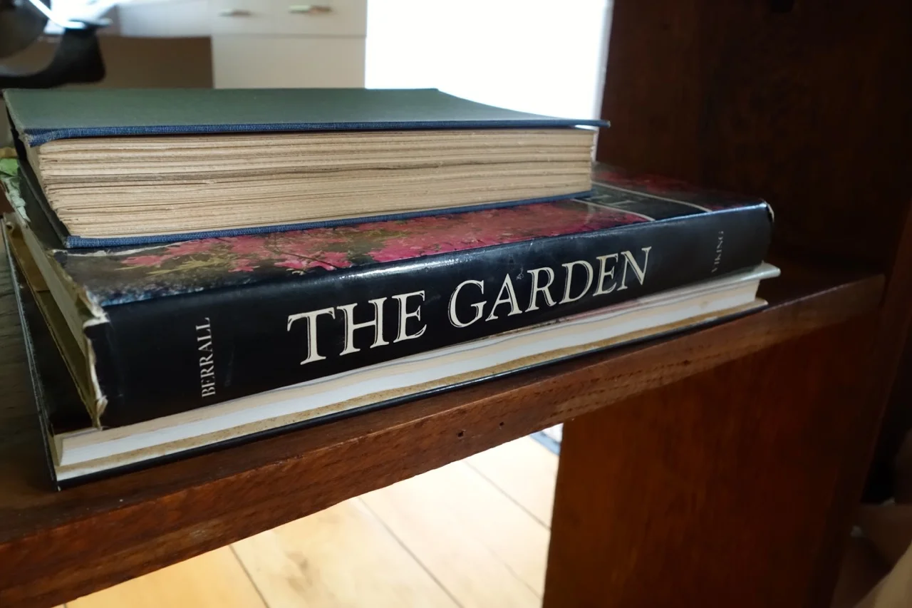 Wright's books show that his influences included Japanese prints, Persian gardens and pavilions, and here we see Julia Berral's The Garden: An illustrated history.